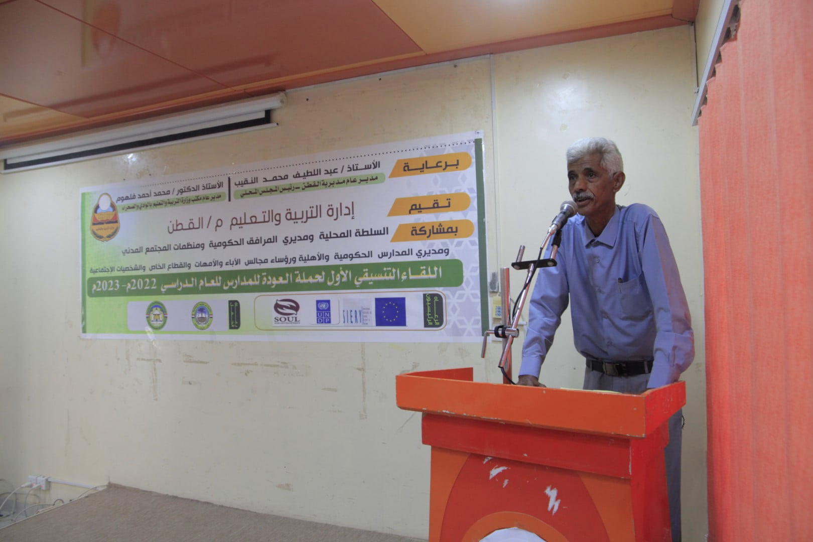 بدوره أعرب مدير ادارة التربية والتعليم الاستاذ فيصل الجهوري عن سعادته بهذا اللقاء الذي يدشن من خلاله حملة العودة للمدارس والهادف الى وضع مقترحات هادفة لدعم التعليم ‘ مشيراً الى ان الأسرة بحاجة الى الاحتياجات اللازمة لأبنائها’ متأملا التنسيق بين المنظمات ورجال المال والاعمال لدعم خطة حملة العودة للمدارس للحد من ظاهرة التسرب بما يسهم في دعم العملية التعليمية ‘ مشيرا ان خطة ادارة التربية الاستراتيجية تم اعدادها بأسلوب علمي من قبل مختصين في منظمة سول وصندوق الامم المتحدة الانمائي التابع للاتحاد الاوروبي undp ‘ مشيدا بجهود وكيل وزارة التربية والتعليم الاستاذ جمال عبدون من خلال دعم عدد من المدارس بالتجهيزات والمختبرات العلمية وقاعات الحاسوب.