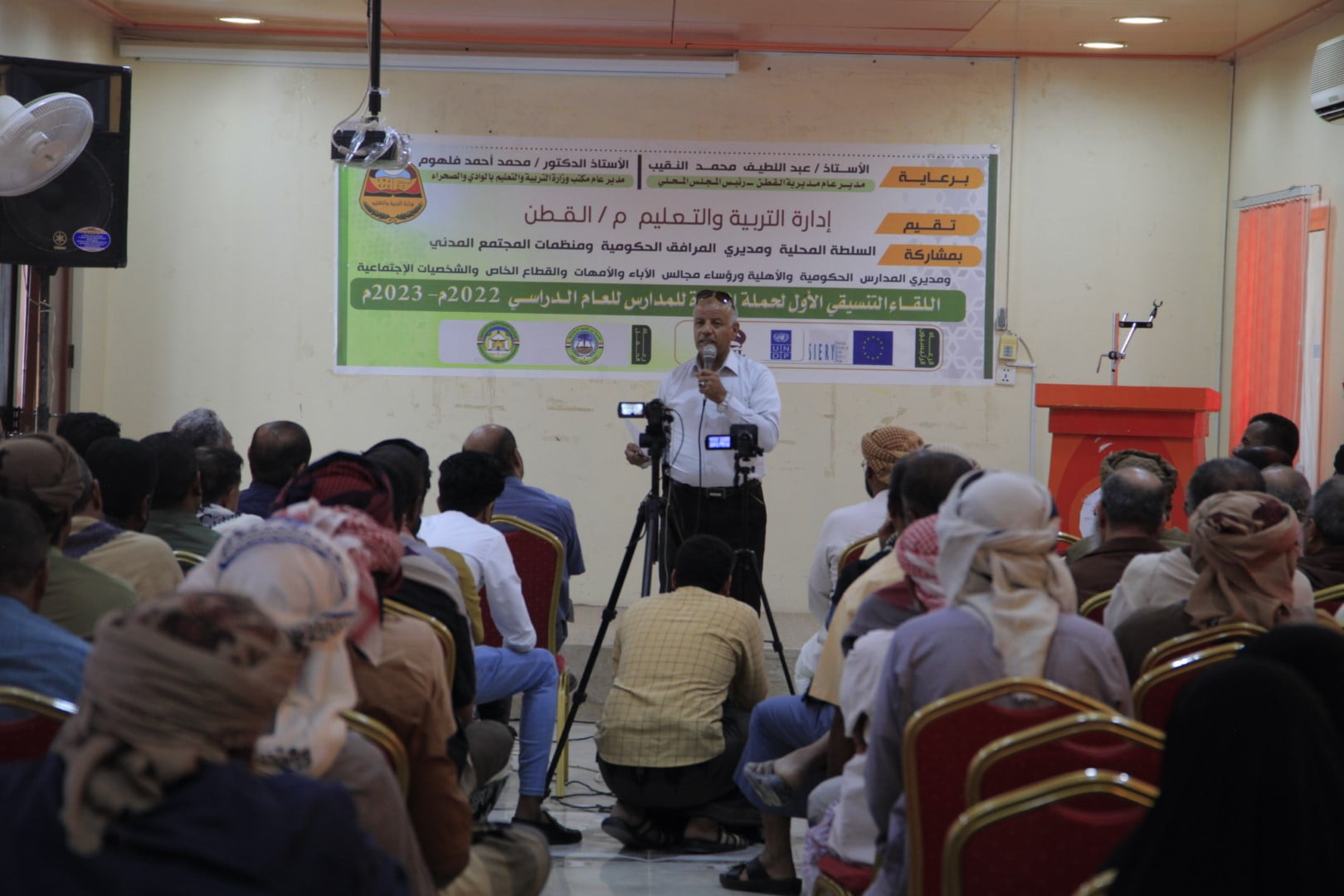 في إطار التعاون المشترك بين إدارة التربية والتعليم ومؤسسة البادية ، ساهمت المؤسسة هذا اليوم الخميس 4 / 8 / 2022 م في لقاء تدشين حملة العودة للمدارس للعام 2022/ 2023 م والذي أقيم بقاعة الفقيد باشماخ بجمع البادية التنموي بمديرية القطن ، حيث يقام اللقاء التنسيقي اـ حملة العودة للمدارس التي تنفذها ادارة التربية والتعليم بمديرية القطن برعاية المدير العام للمديرية رئيس المجلس المحلي عبداللطيف النقيب والمدير العام لمكتب وزارة التربية والتعليم محافظة حضرموت الوادي والصحراء الدكتور محمد فلهوم .